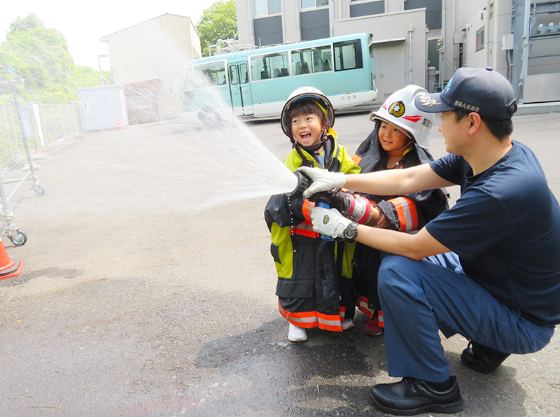 署内を案内していただいたあと、実際に「放水」を体験させていただきました。子ども達に貴重な体験をさせていただきありがとうございました。
